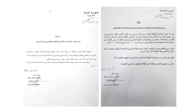 اقراء المزيدافادت دائرة العلاقات العامة في بلدية بيروت في بيان، ان محافظ بيروت القاضي مروان عبود اصدر بلاغين” طلب في الاول