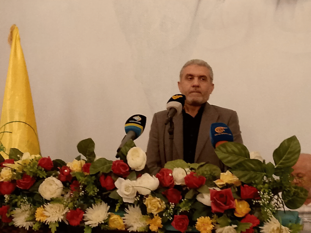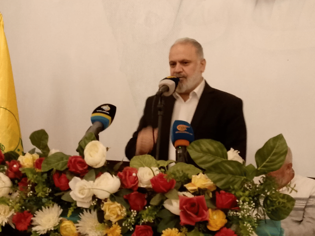 كلمة فصائل المقاومة الفلسطينية القاها نائب المسؤول السياسي لحركة حماس في لبنان د.ايمن شناعة فتوجه الى حزب الله بالقول دمنا واحد وطريقنا واحد وبندقيتنا باتجاه فلسطين واحدة وان دماء السيد حسن نصرالله الذي اول من اطلق عملية اسناد عزة لن تذهب هدرا