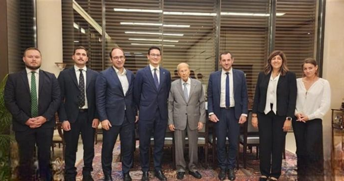 استقبل الرئيس العماد ميشال عون في دارته في الرابية وفداً من الاتحاد الأوروبي، ضم النائبين نيكولاس باي وباولو انسيلفيني، يرافقهما المساعدون البرلمانيون شارل دو مايير، سيكستي لابوش، ايف فروجيه وماركو فرنزوني، بالإضافة الى السيد تيبولت واليت والسيدة كارين عشقوتي من مؤسسة SOS Chrétiens d’Orient